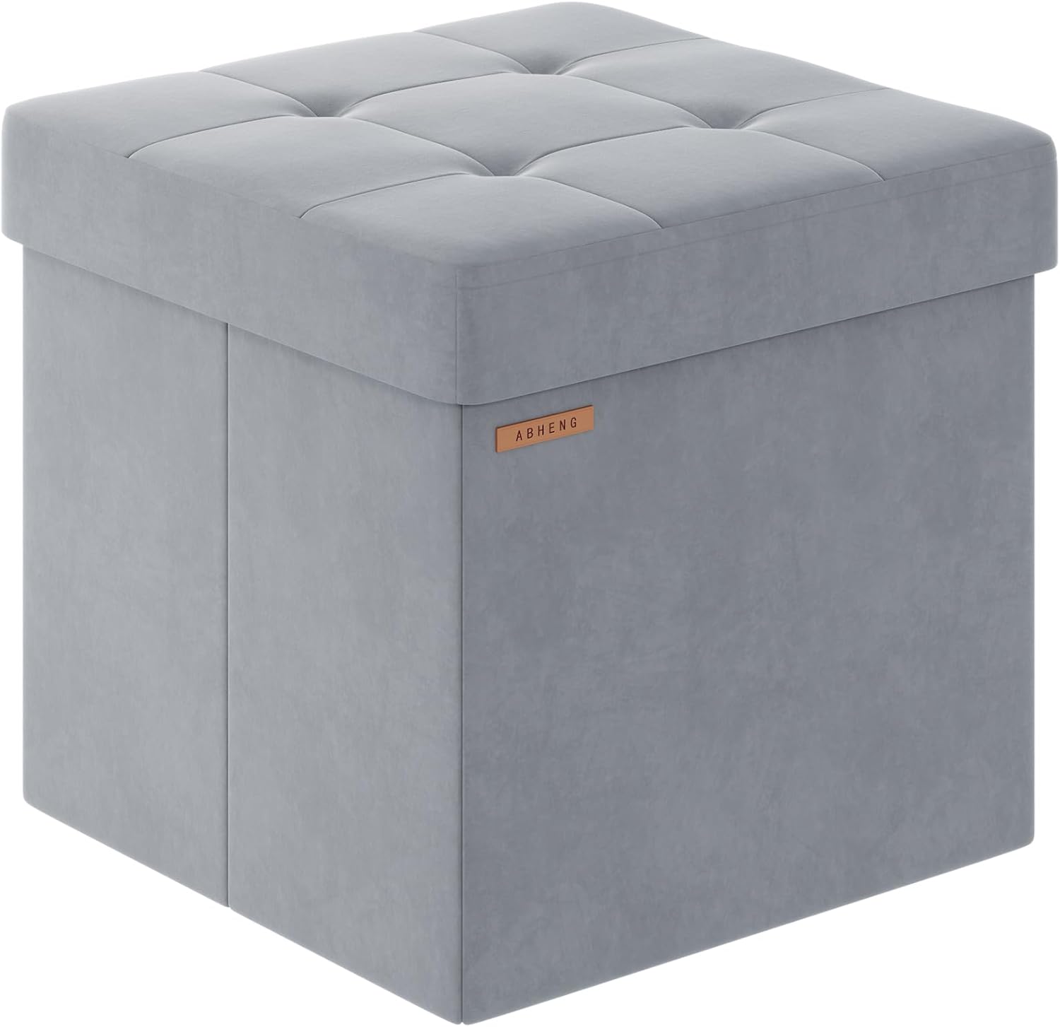 Folding Storage Ottoman, Velvet Storage Bench, Footrest, Footstool, for Living Room, Bedroom and Office,15 x 15 x 15 Inches, 300 kg Load Capacity, Dove Gray UASND04G