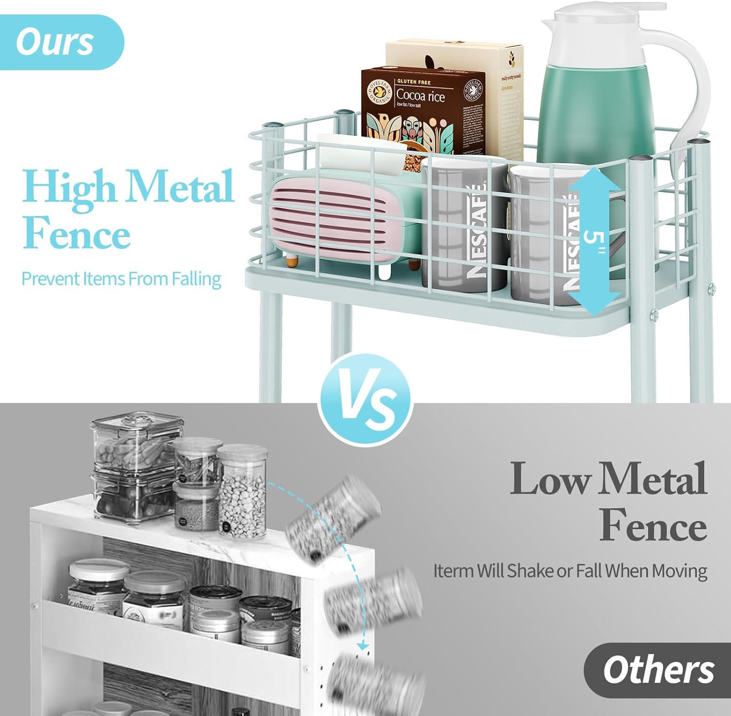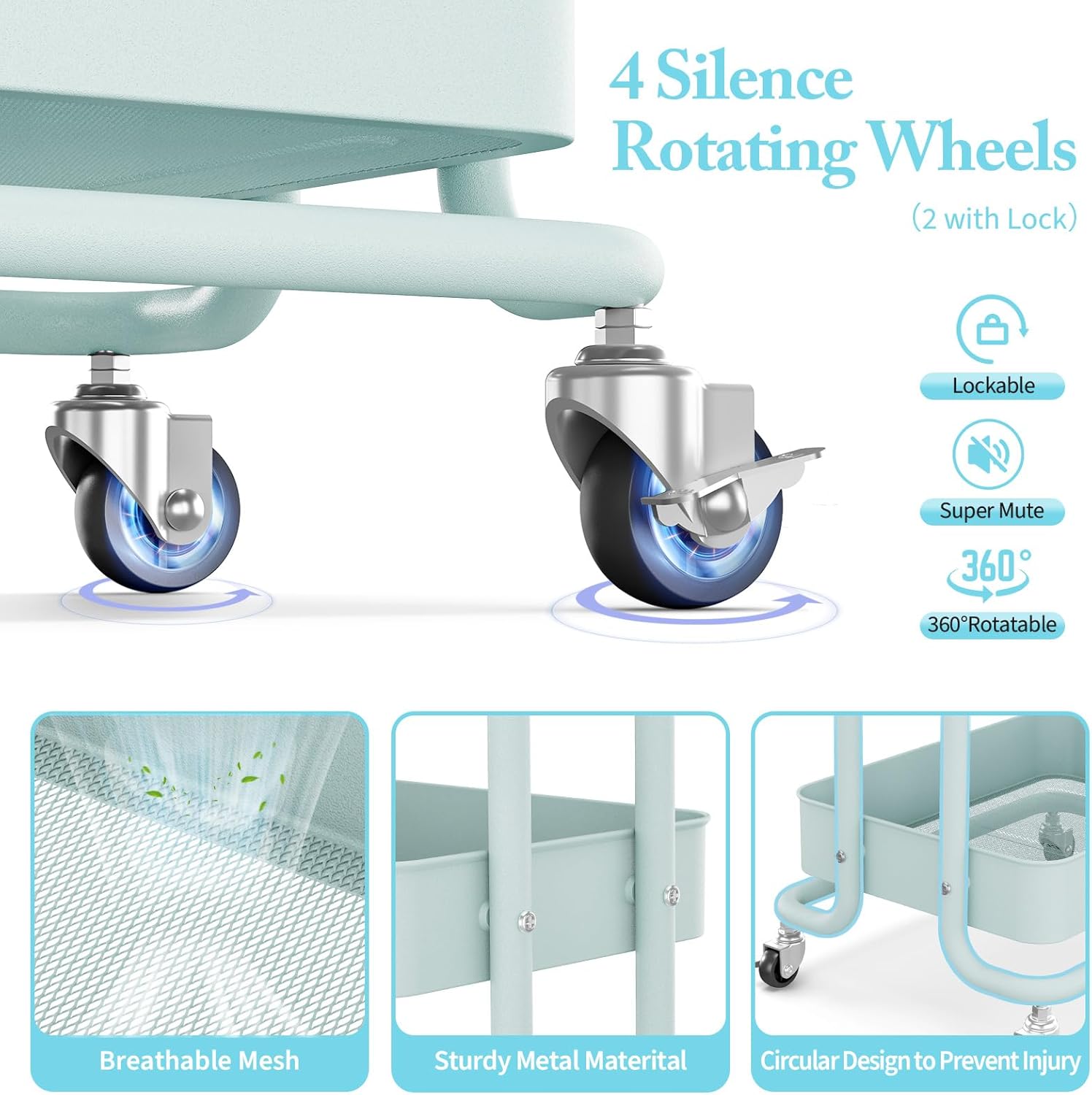 - 【HIGH MESH GUARDRAIL Design】The rolling cart features a high mesh design, providing added height to prevent items from falling off. This utility cart ensures secure storage for all your items. You can display your photos on top of the mesh to add fun to daily life.You can discover more storage solutions and interesting ideas in the process of using this cart.