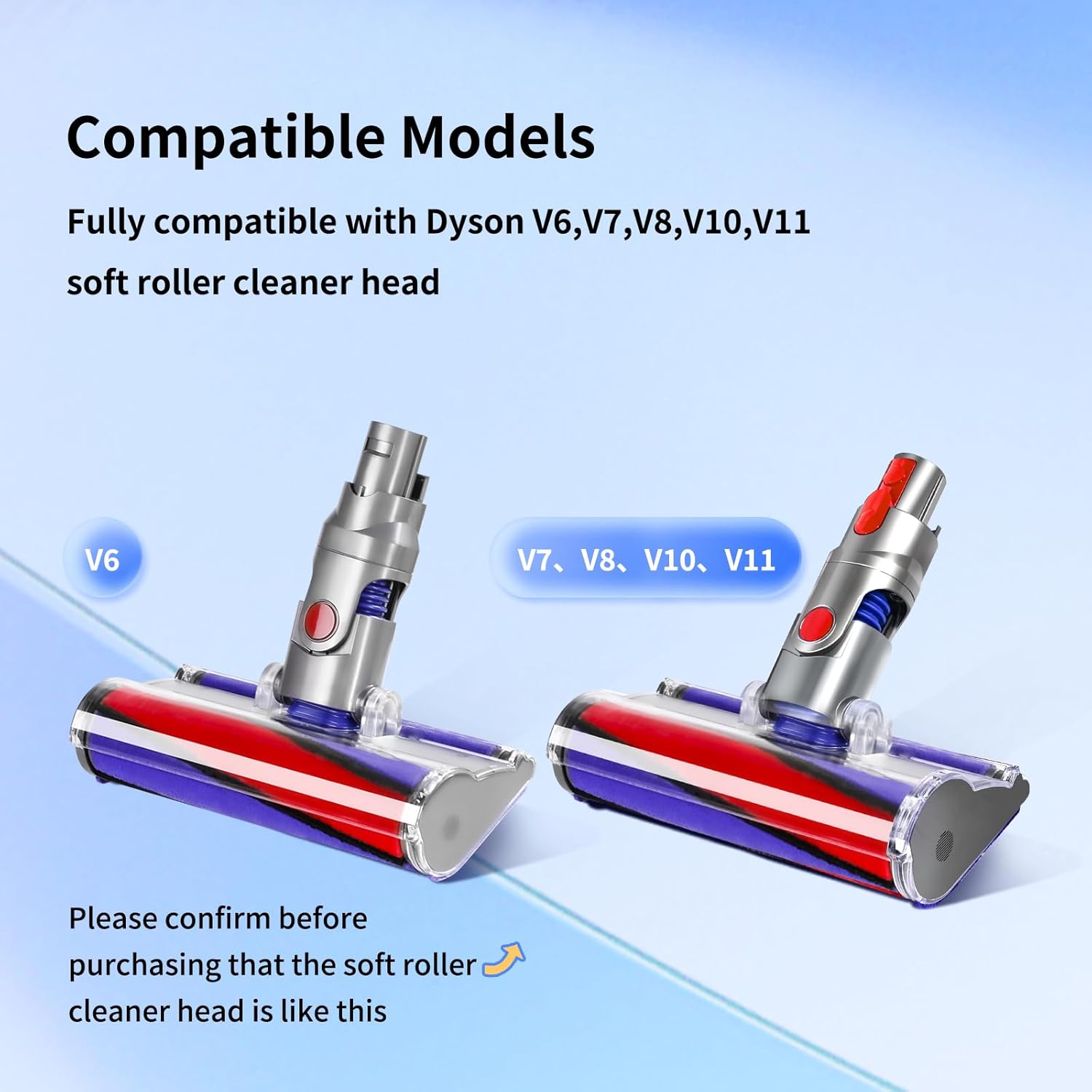 - 【Fully Compatible】: The soft plush strips vacuum replacement compatible with Dyson V6,V7,V8,V10,V11 soft roller cleaner head.Not compatible with quick-release motorhead cleaner and V12,V15 vacuum head. Before purchasing, please refer to the product image to confirm your accessory model and size.