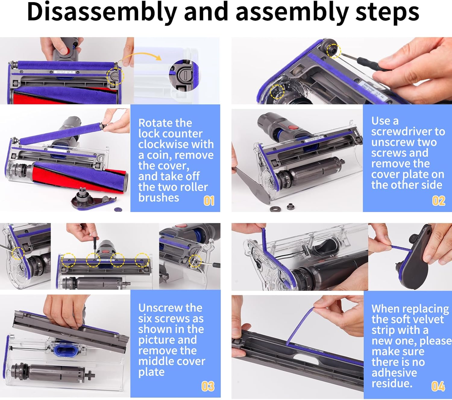 - 【Complete Kit】:You will receive 9 soft plush strips to easily replace the old ones, make sure there is no sticky residue on the base plate before replacing with the new ones, 1 screwdriver can be used to accurately remove the screws on the soft roller cleaner head without any other tools.