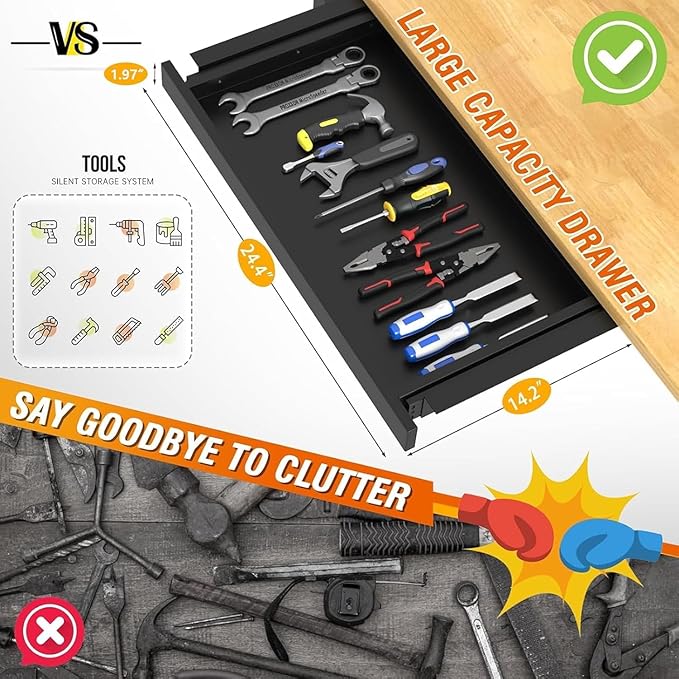 - Convenient Power Outlets: Experience unparalleled convenience with integrated power outlets right on your garage workbench. Easily power your tools and devices without the hassle of searching for external outlets or dealing with messy cords. Stay focused on your projects with everything you need at your fingertips.