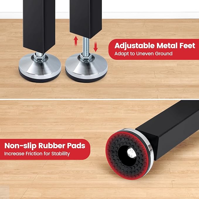 - Stable Metal Feet: ①Adjustable height to adapt to uneven ground, keeping stable. ②Non-slip mute pad to increase friction, more stable and safe
