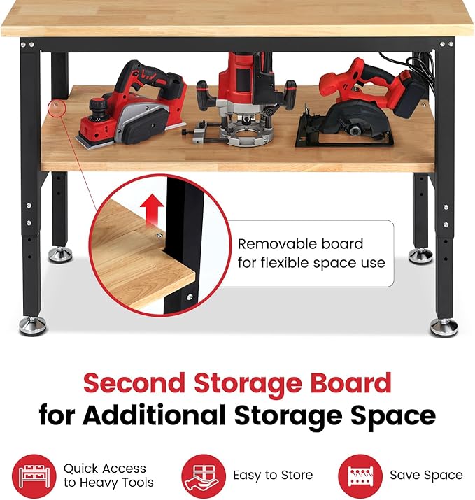 - Second Storage Compartment:Under table shelf, load-bearing 500LBS, greatly increase storage space. Adjustable Height:31-1/2~39-1/2"H. Size:48x20" Suit for for Shop Woodworking, Office, Home, Commercial.