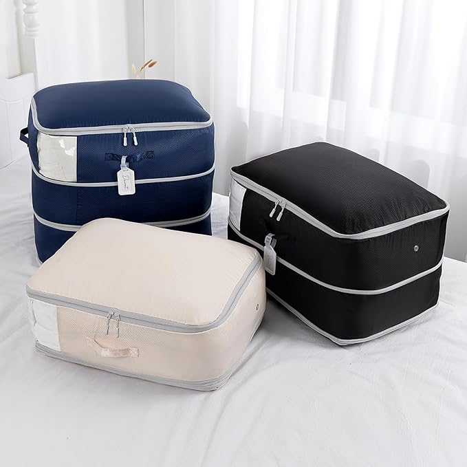 - [3-Layer Compression Bags] Our ultra space-saving self-compression organizer features a unique 3-layer compression system, offering not only more storage capacity than standard 2-layer designs but also greater flexibility. It’s perfect for blanket storage, comforter storage, pillow storage and bulky items, allowing you to optimize every inch of space in your closets or underbed storage containers.
