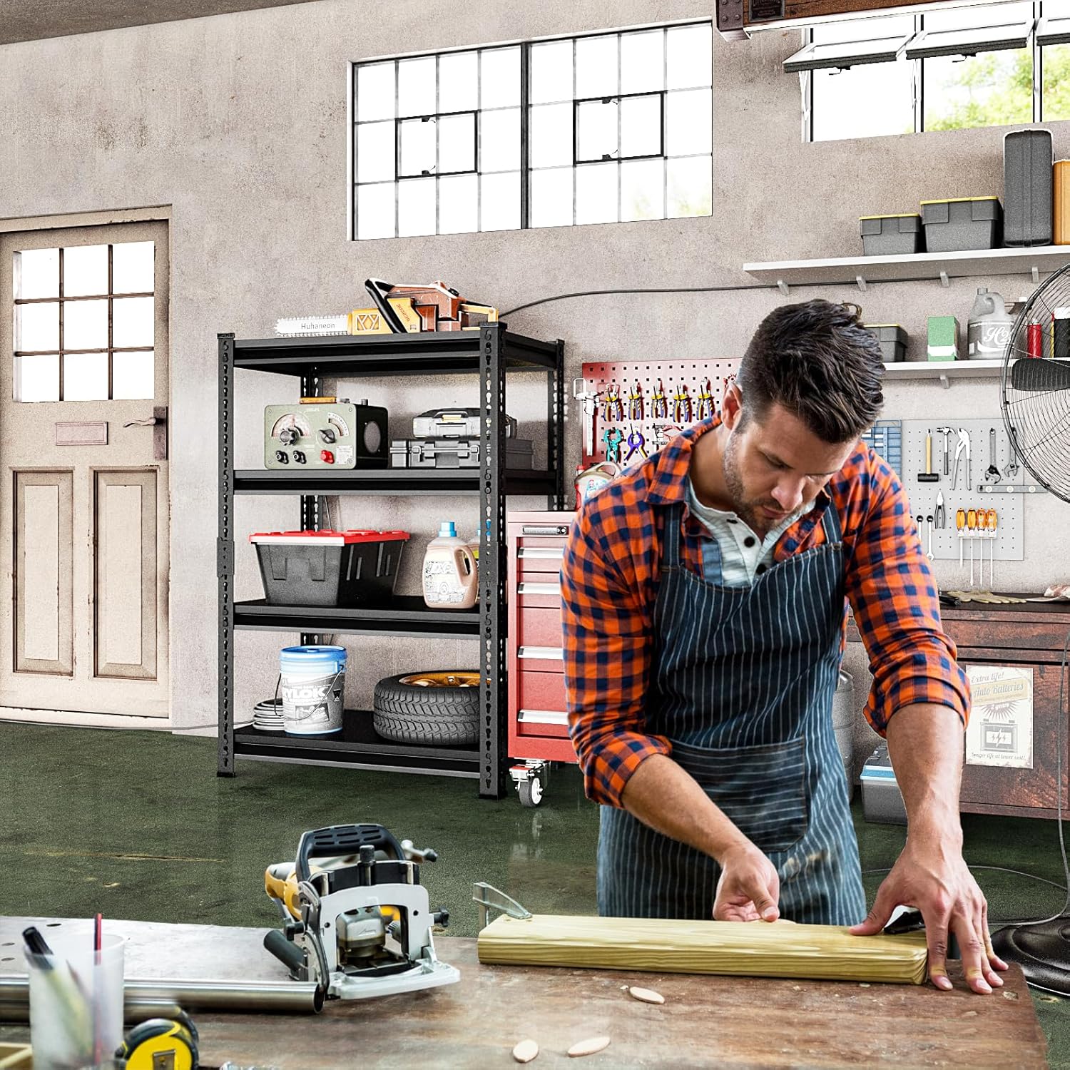 Adjustable Garage Storage Shelves, 35.4''W Garage Shelving Heavy Duty Loads 1280LBS, Metal Industrial Utility Shelf for Warehouse, Kitchen, Laundry Room,35.4" W x 15.7" D x 66" H,Black