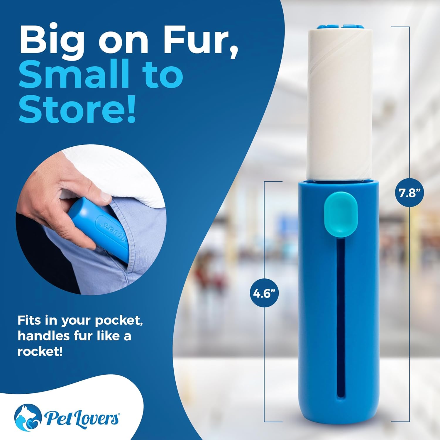PetLovers Mini Lint Roller Travel Size 50 Sheets – Compact pet Hair Remover for Dog and cat Fur. Lightweight Design Ideal for Clothes Furniture and car. Perfect for Quick and Easy on The go Cleaning