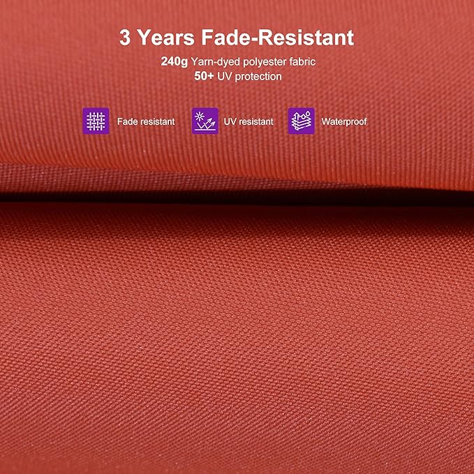 - Upgraded Fabric: This patio umbrella is made from 240 gsm yarn-dyed polyester fabric, which is highly effective in providing sunscreen protection, waterproofing, anti-ultraviolet and fading.