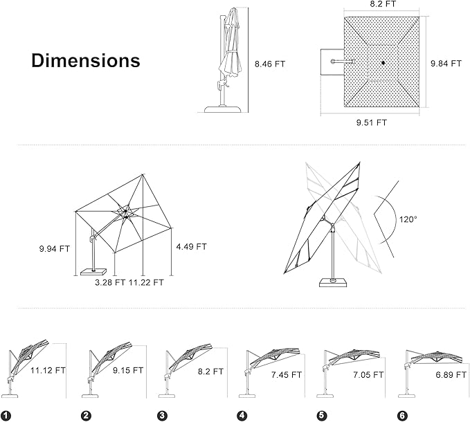 - Upgraded Swivel Function: The umbrella rotates 360°, the canopy tilts left and right, and has 6 adjustable positions to provide optimal shade from all angles, allowing you to enjoy a comfortable outdoor experience all day long.