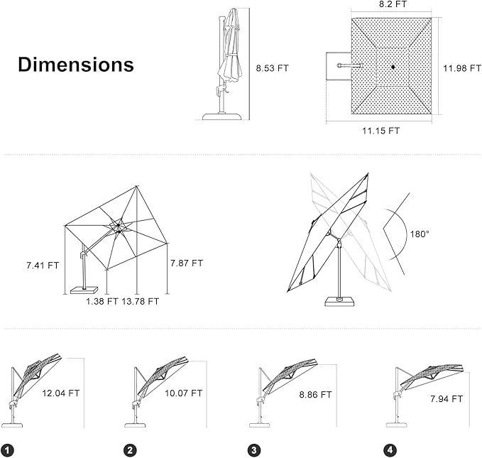 - Upgraded Swivel Function: The umbrella rotates 360°, the canopy tilts left and right, and has 6 adjustable positions to provide optimal shade from all angles, allowing you to enjoy a comfortable outdoor experience all day long.