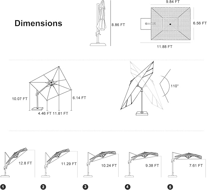 - Upgraded Swivel Function: The umbrella rotates 360°, the canopy tilts left and right, and has 8 adjustable positions to provide optimal shade from all angles, allowing you to enjoy a comfortable outdoor experience all day long.