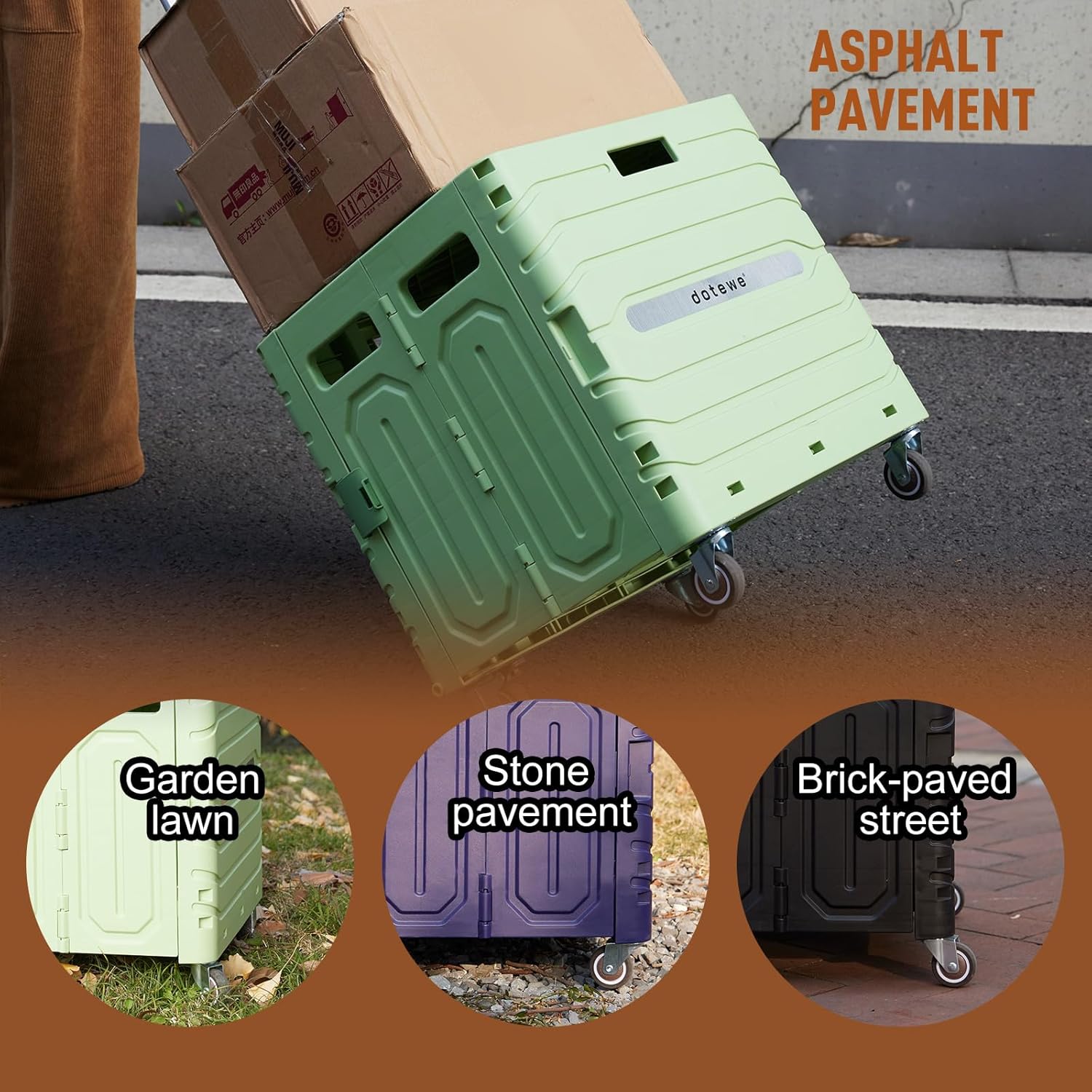 - Easy to Maneuver: The cart’s 360° swivel wheels and ergonomic handle make it easy to navigate through narrow aisles, crowded sidewalks, or uneven outdoor terrain.