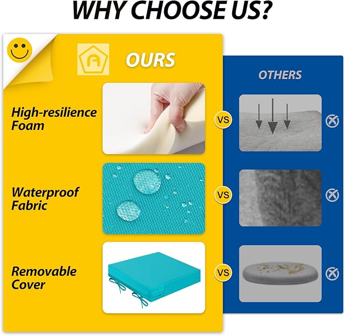 - Wide Use & Tips: These outdoor dining chair cushions fit pools, patios, balconies, decks, backyards, and gazebos. Foam inserts and covers are packed separately in bags and placed in one box—check all parts. Easy assembly required