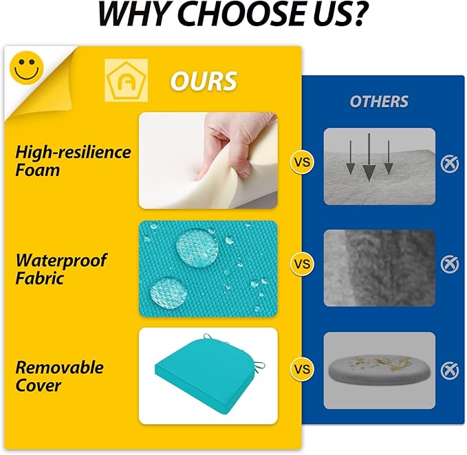 - Wide Use & Tips: These outdoor dining chair cushions fit pools, patios, balconies, decks, backyards, and gazebos. Foam inserts and covers are packed separately in bags and placed in one box—check all parts. Easy assembly required