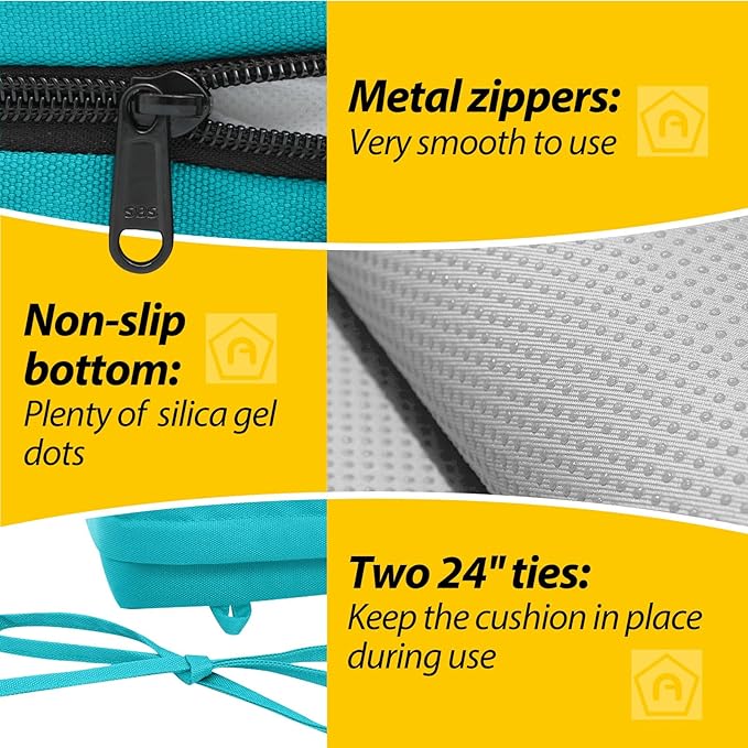 AAAAAcessories Outdoor Seat Cushions for Chairs, Waterproof, Fade-Resistant Patio Furniture Replacement Cushions, 19" x 19" x 3", Set of 2, Turquoise