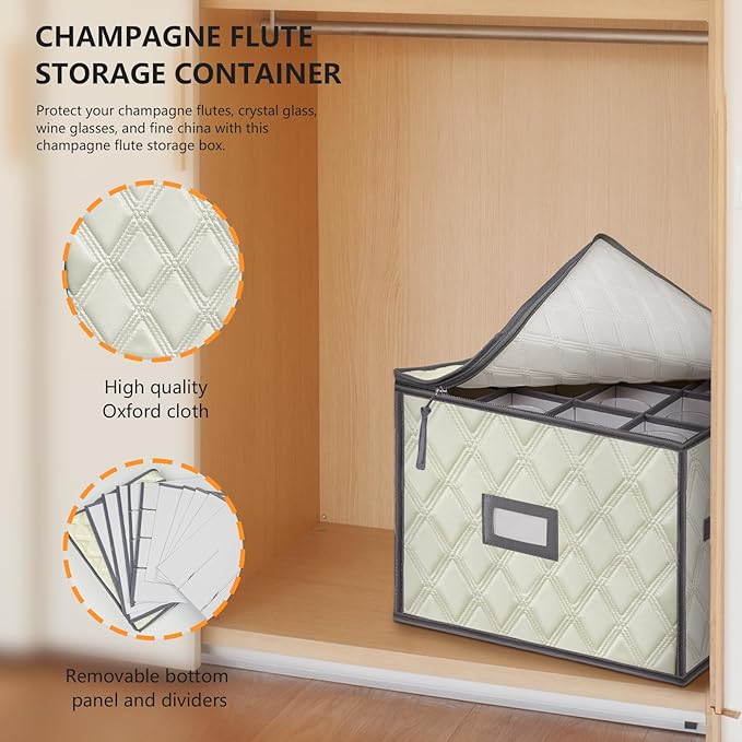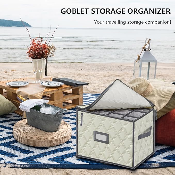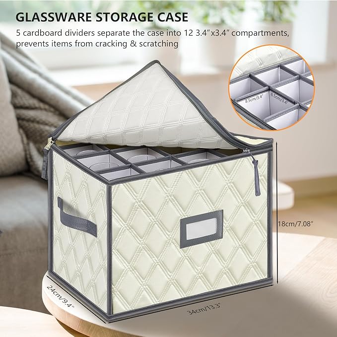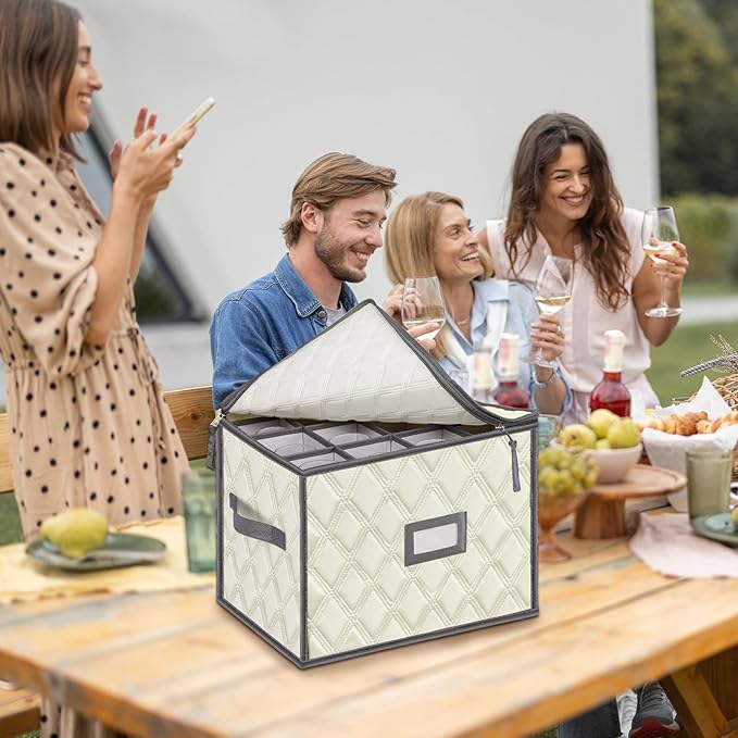 - Wine Glass Storage: Protect glasses storage organizer in this specially designed storage box, keeping everything organized and accessible; Thoughtful compartments maintain the integrity of your glassware, accommodating up to 12 items.