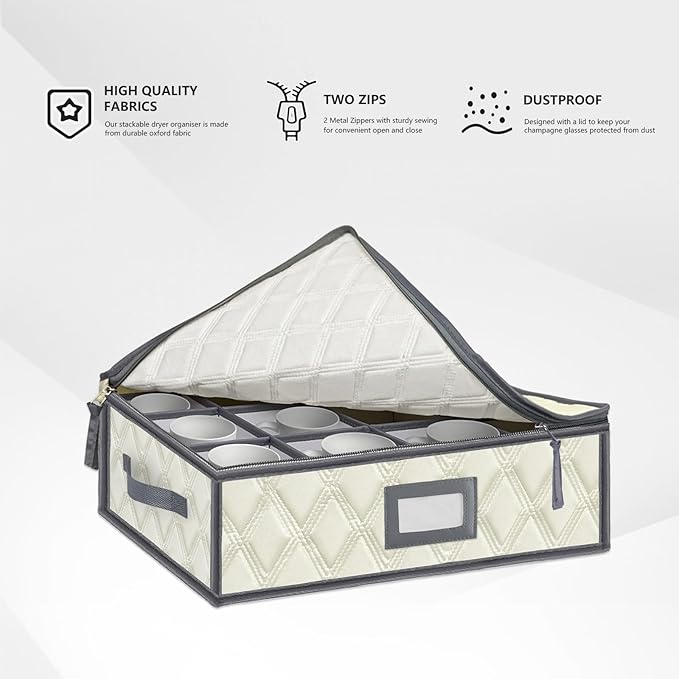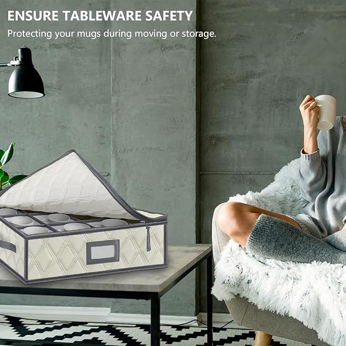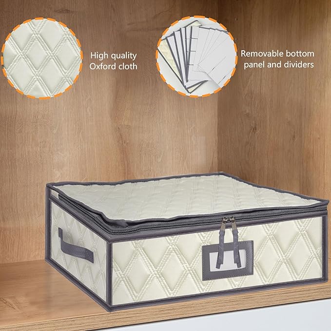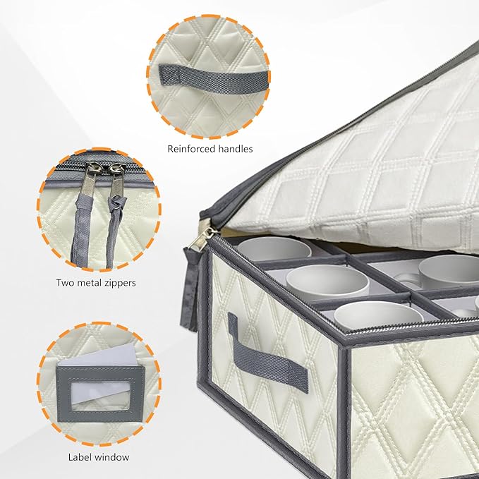 - Sturdy Handles & Zippers: The china storage containers with 2 sturdy handles on the sides for easy carrying and moving. Additionally, two #5 stainless steel zippers are designed to better protect the cups inside the box and make it easy to store and retrieve cups.