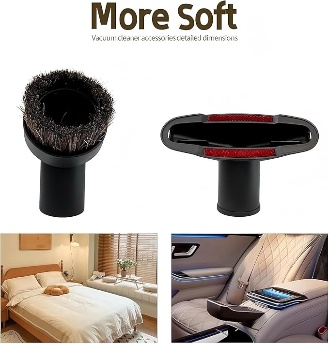 - Square Vacuum Brush Attachment --- Can Be Used For Wet or Dry Picking, Easy To Install And Remove, Soft Bristles, A Must Have For Cleaning Wide Spaces Such As Blinds, Skirting Boards, Ceiling Fans, Return Vents, Any Type Of Furniture Or Doors With Decorative Grooves, Plain Wood Furniture, Narrow Spaces And Curved Surfaces, Won't Scratch Sensitive Surfaces, Meets Your Daily Application Needs.