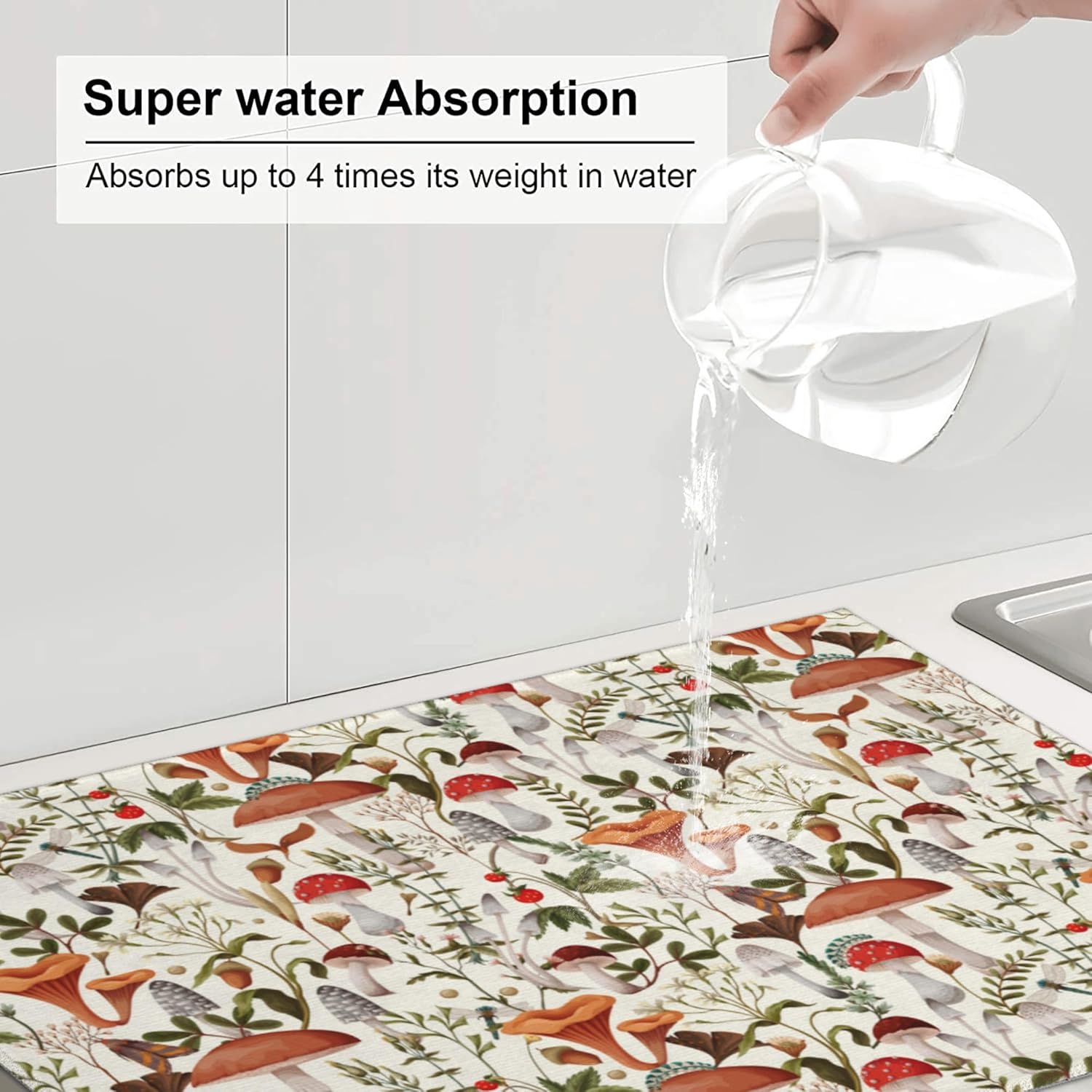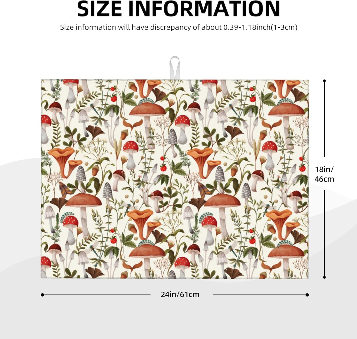 Boho Mushroom Decor Microfiber Dish Drying Mat for Kitchen Counter 18"x24" Botanic Plant Beige Dishes Pad Dish Drainer Rack Mats Washable Absorbent Fast Dry