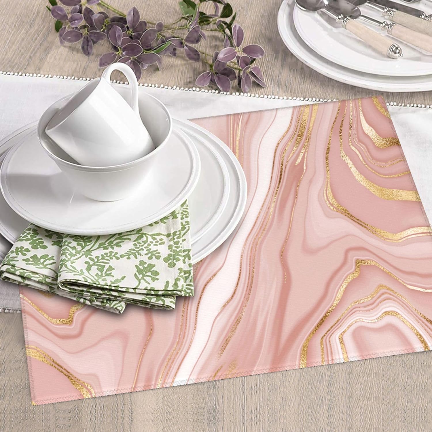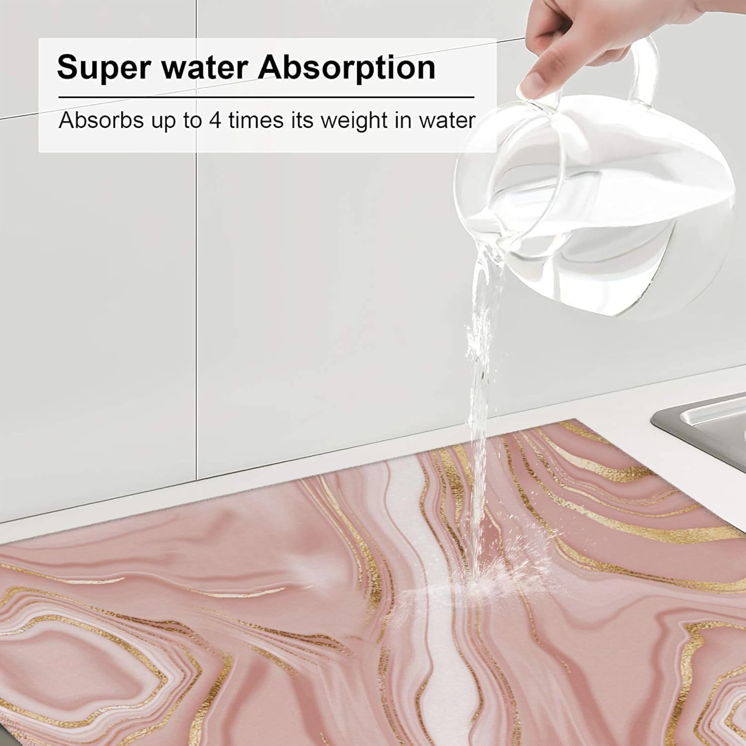 Pink Golden Marble Dish Drying Mat for Kitchen Counter Washable Absorbent Reversible Microfiber Rose Pink Modern Decorative Drying Pad Kitchen Accessories 16"x18"