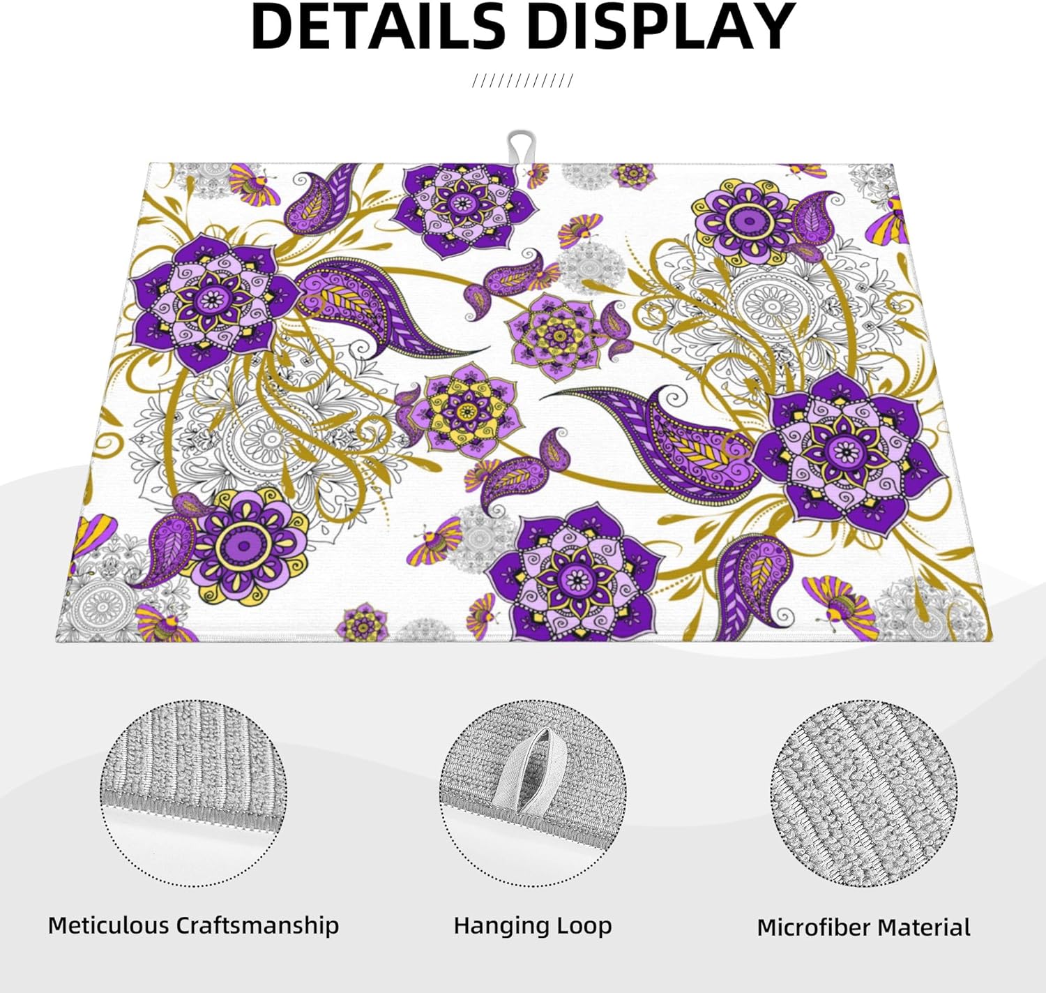 Purple Flower Kitchen Drying Mat Boho Floral Microfiber Dish Drainer Mat for Kitchen Counter Absorbent Reusable Washable 18x24 Inch Home Holiday Decor