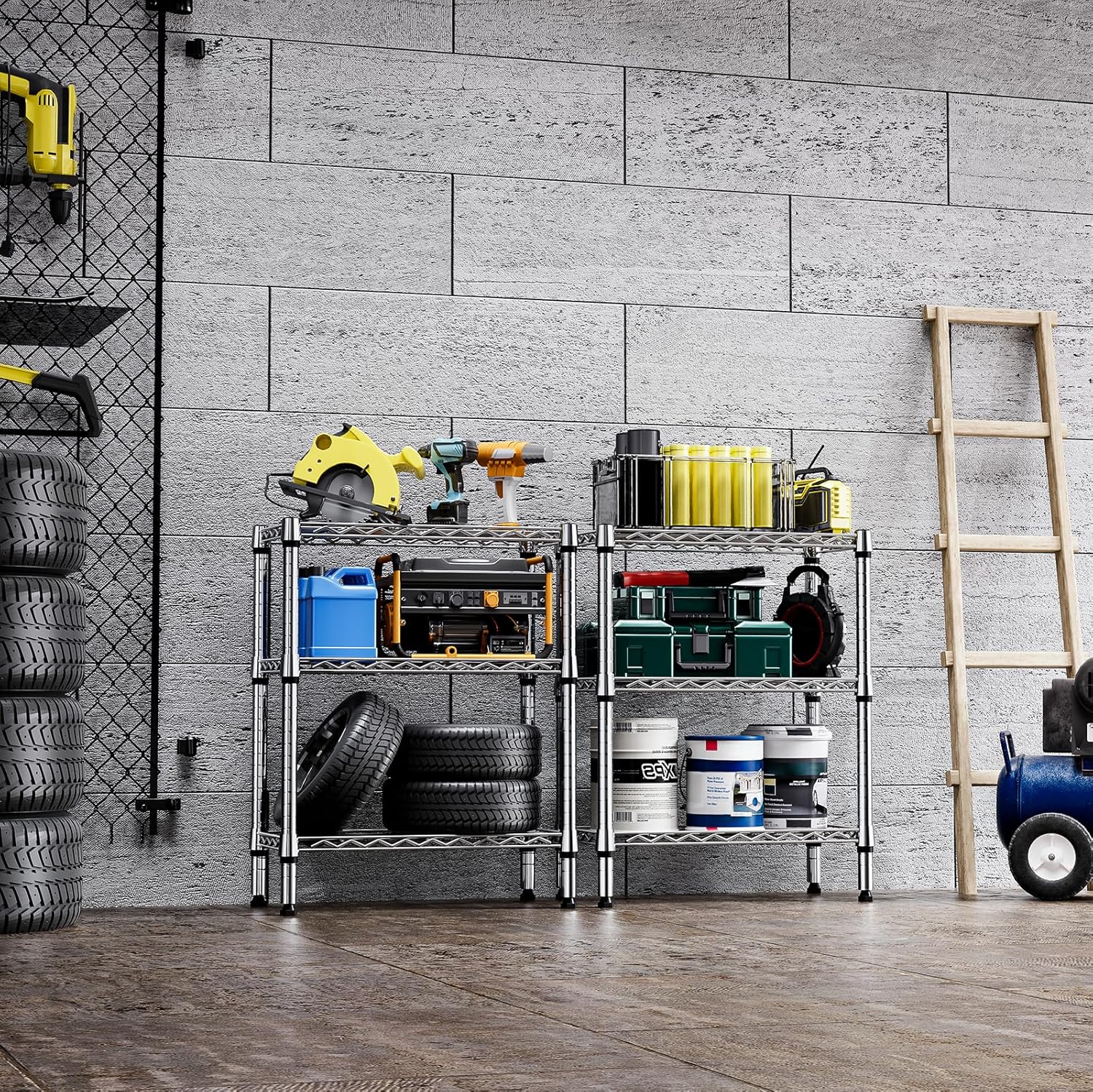 750 lbs 3 Tier Shelf Metal Storage Shelves Wire Rack Closet Organizers for Garage Kitchen Bathroom Laundry Chrome 11.8" D x 25.6" W x 31.5" H