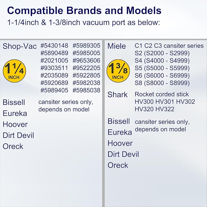 - Easy to Install and Use: 1.25" universal vac tools to fit extension hose directly, or plus adapter for 1.37" vacuum cleaners (like: Miele canister vacuums), all tools can be used at wet or dry conditions