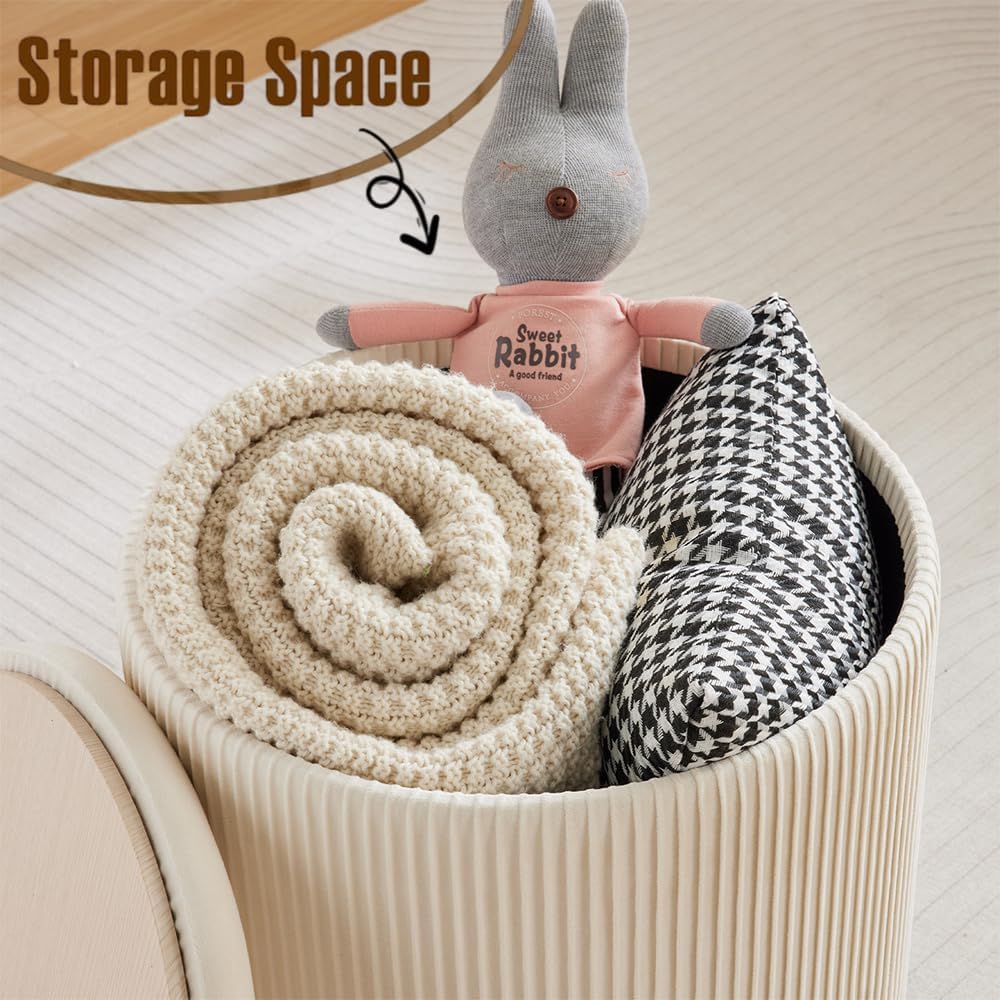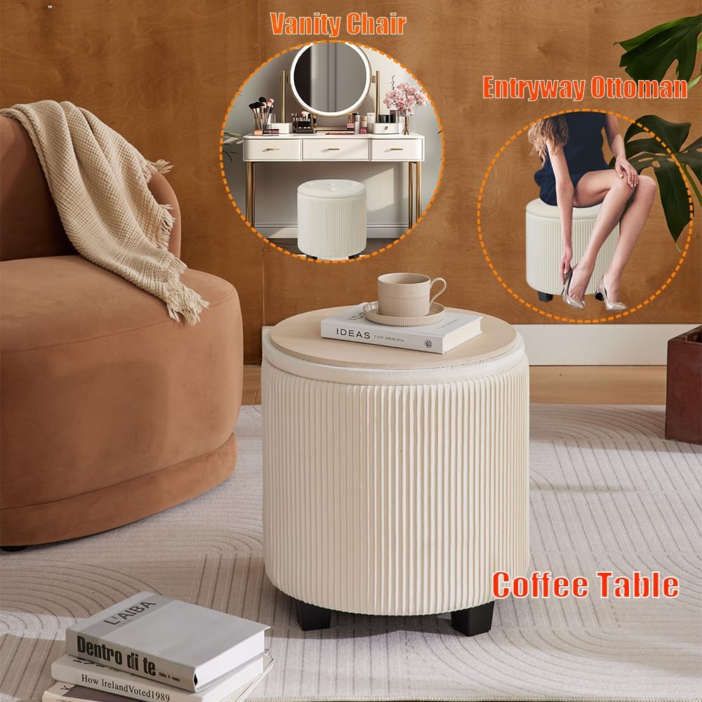Big Round Ottoman with Storage Set of 2,Upholstered Velvet Vanity Stool for Makeup Multifunctional Foot Rest Coffee Table Padded Seat Tufted Ottomans for Living Room&Bedroom(White)
