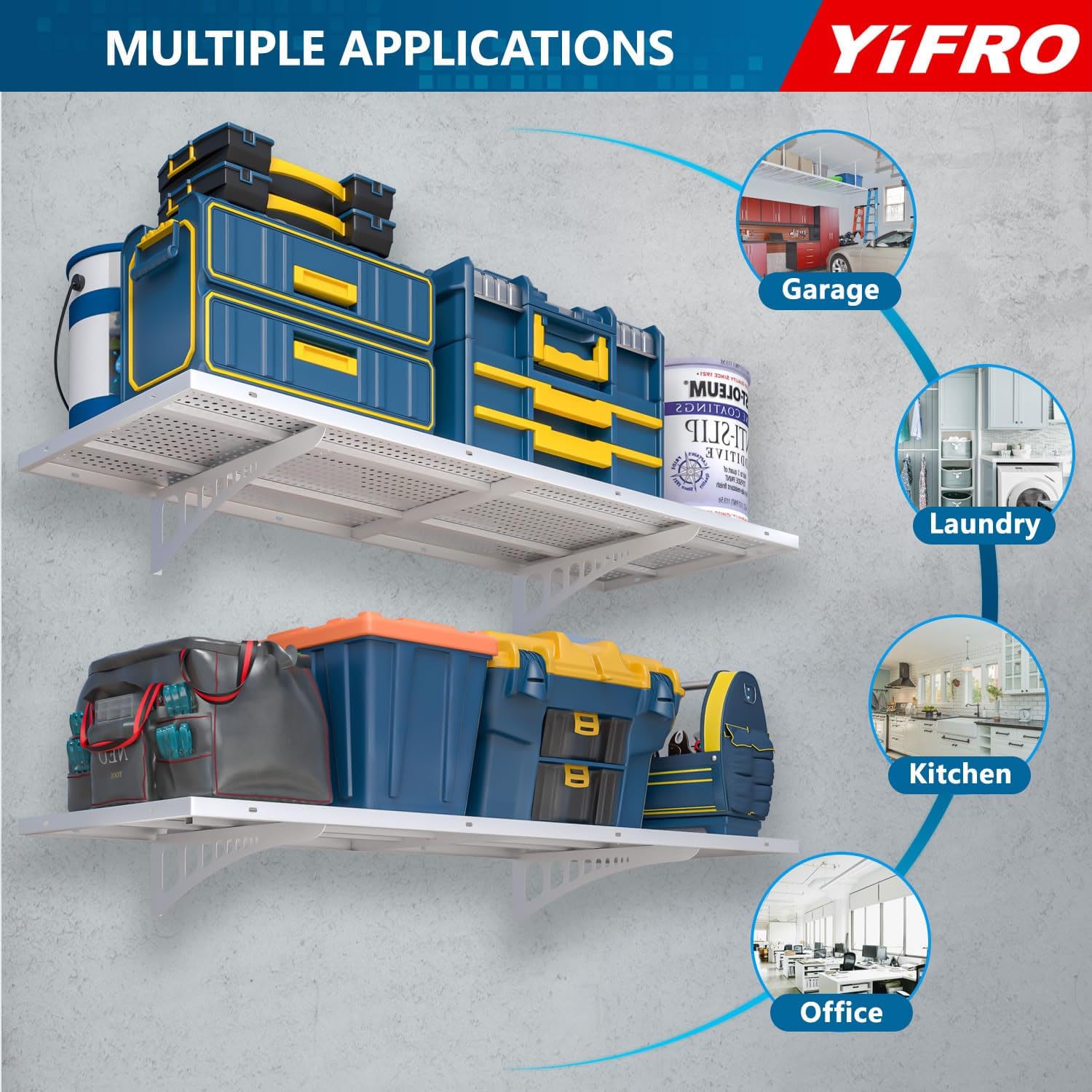 - HEAVY DUTY CONSTRUCTION: YIFRO garage wall shelving takes its cues from architectural frame construction, with a 1.5x4 ft individual bracket load capacity of 250 lbs. and a total of 1000 lbs. for 4 shelves, which makes it easy to store most of the items in your garage.