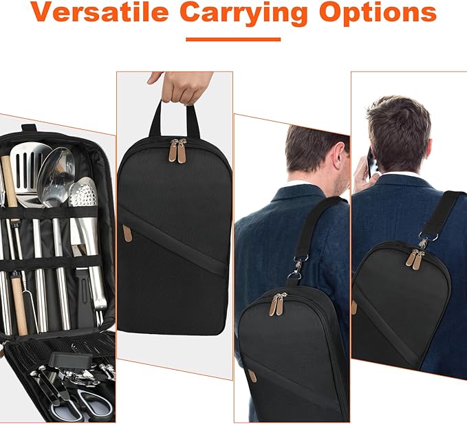 - Ultimate Organization: Our 3-layer storage system keeps your utensils neatly organized and protected from the elements. Made with durable Oxford Woven Fabric and a water-resistant PVC coating, this compact backpack ensures everything stays safe during your outdoor adventures.