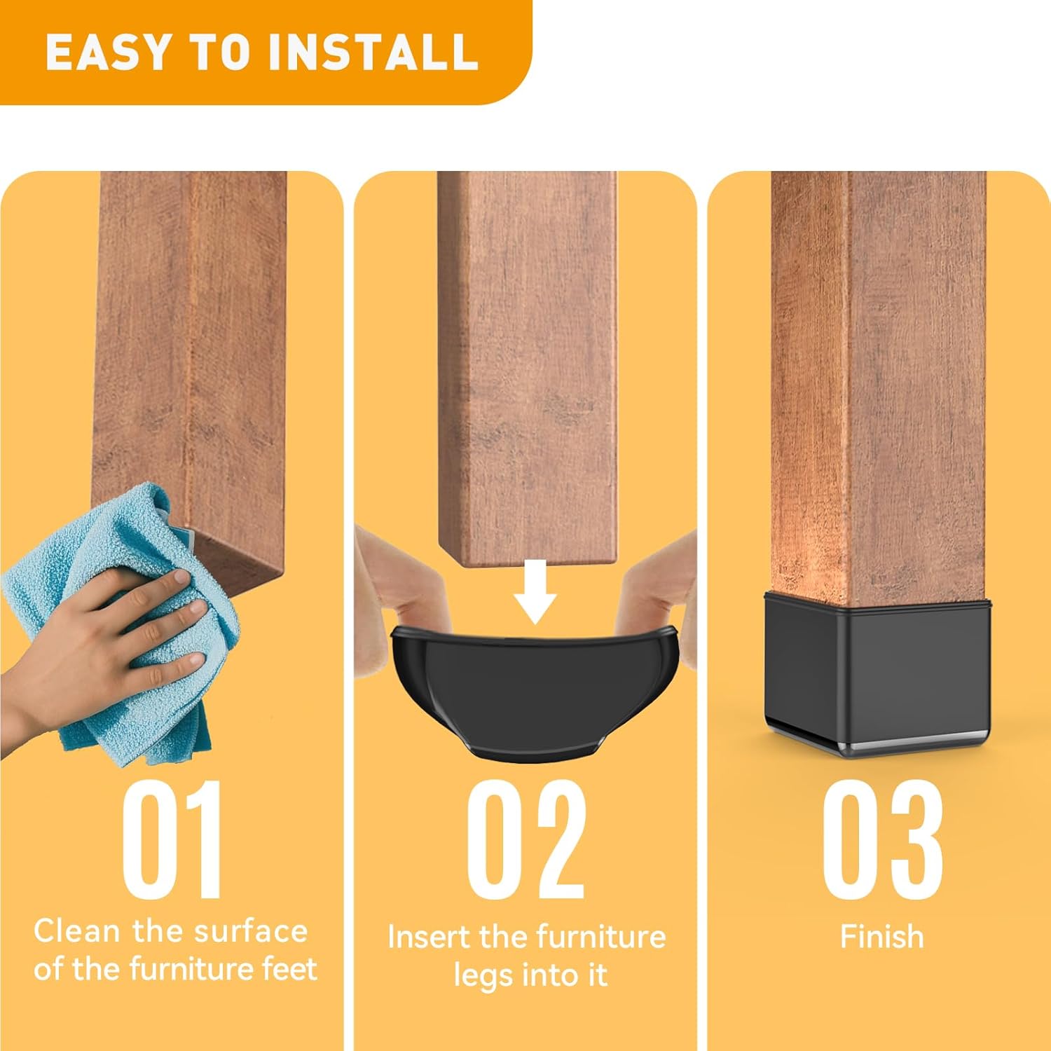 - 【UNIVERSAL SHAPE AND SIZE】:Furniture Sliders has High elasticity, free to pull.No deformation and no discolorratio.Chair Leg Sliders are good for square furniture legs 0.67- 0.87"(17-22mm).with perimeter of 2.68 - 3.46" (68-88mm).