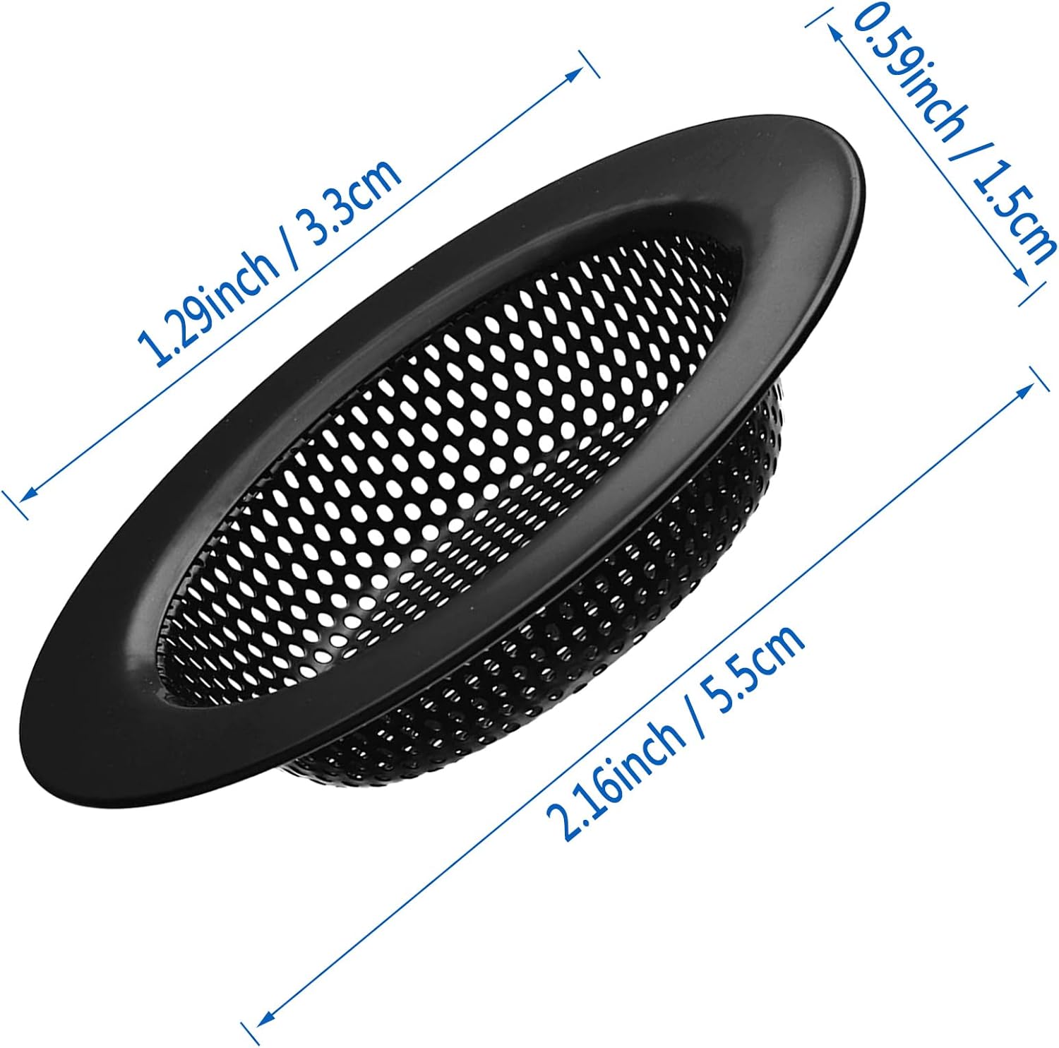 - 2.16" TOP DIAMETER: Black stainless steel kitchen sink strainer 2.16" Top diameter, 1.29" Basket. With large metal flat wide rim to rest over sink's drain. Great for US standard kitchen sink