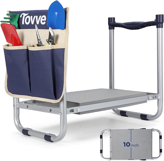 - 【2 in 1 Garden Stool】This 10-inch wide garden kneeling seat provides you with better comfort and support, making gardening easier. It can be used as a comfortable garden seat for pruning taller plants. It can also be laid flat on the ground as a supportive kneeling pad to avoid dust and weeds when kneeling to weed. Reduce the pressure on your back and knees when gardening.