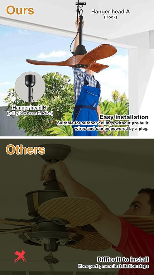 - π Versatile Mounting Options for Any Ceiling π: Choose between Downrod mounting and Hook mounting based on your ceiling's characteristics. Opt for Downrod mounting with hardwired power if your ceiling has reserved wires. Alternatively, select Hook mounting for ceilings without reserved wires, enabling power through a socket with a convenient plug-in setup. Included are 16 FT extension cords, facilitating seamless installations even for longer distances. Customize your installation for optimal convenience and adaptability.
