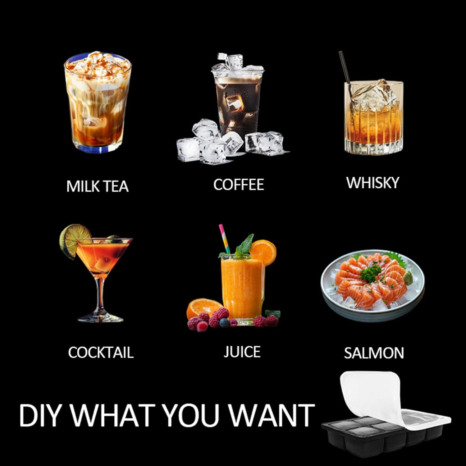 - MULTI-FUNCTIONAL LARGE ICE MOLDS FOR FREEZING: Beyond ice cubes, these versatile trays can freeze juice, purees, sauces, and more. Their reinforced stainless steel frame ensures stability and easy handling, making them a reliable tool for cocktail enthusiasts and food preparers alike.