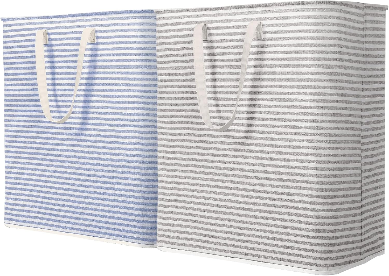 Lifewit 2 Pack Laundry Hamper Large Collapsible Laundry Basket, Freestanding Waterproof Cloth Hamper with Easy Carry Handles in Laundry Room Bedroom Bathroom Dorm for Adult, Grey&Blue, 2 x 100L