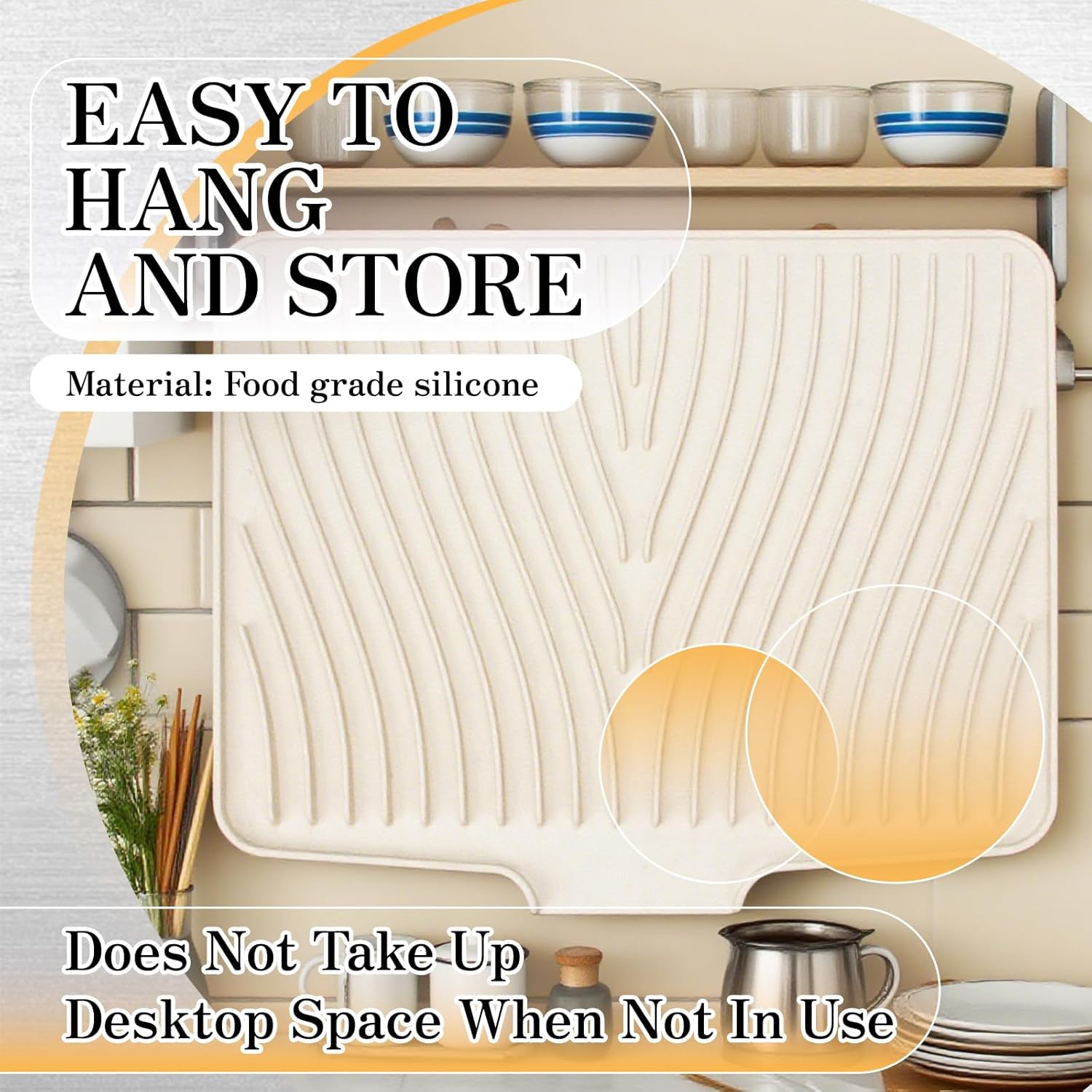 RoseFlower Dish Drying Mat, Large 15.7" x 13" Silicone Dish Mat Drying Kitchen Mat, Faucet Mat for Kitchen Sink, Dish Drying Mats for Kitchen Counter, Refrigerator or Drawer Liner - White