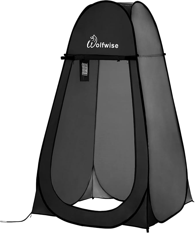 WolfWise Portable Pop Up Privacy Shower Tent, Spacious Changing Room, Dressing Room, Sun Sunshade Canopy Outdoor Rain Shelter, Backpack Privacy Shelters for Camping, Hiking, Beach, Toilet, Large Black