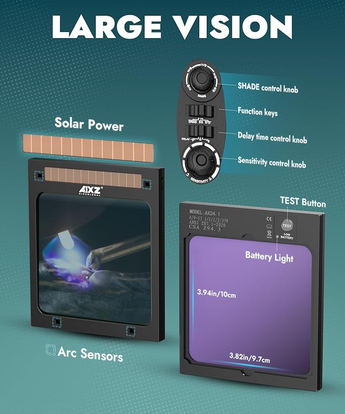 - Wide field Vision: The lens design of the welding helemts has a wide field of vision, 3.94''*3.82'' large viewing allows welders to clearly see the entire welding area during welding, which makes it easy to observe the quality of the welding and carry out precise operation, and also helps welders cope with the complex working environment