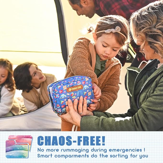 - π Travel-Friendly Organization: Our first aid kit is meticulously designed to ensure quick access during travel emergencies. Our supplies are neatly organized in designated compartments, all in one compact and portable storage bag, allowing for quick grabs during emergencies, making it perfect for parents on the go!