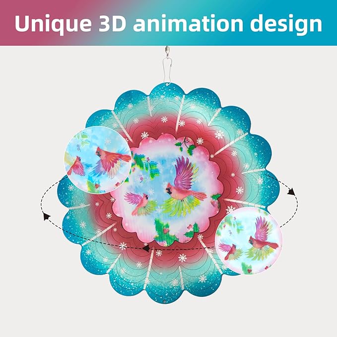 - 【3D Animations Cardinala Spinner Decor】The magical Cardinala style inspires the decorative hanging wind spinner, With a beautiful 3D dynamic pattern of the Cardinala creates a magical 3D animation visual effect through different angles on the surface. The unique design make it seems more visual. Suitable decorate your garden and patio.