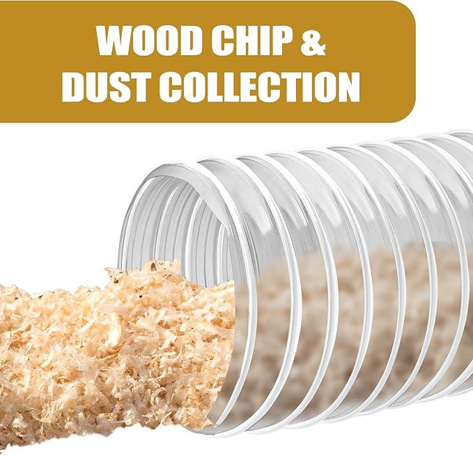 - FLEXIBLE CLEAR CONSTRUCTION: The flexible clear PVC material allows you to easily observe the flow within the hose, ensuring optimal fume collection for various dust collection needs.