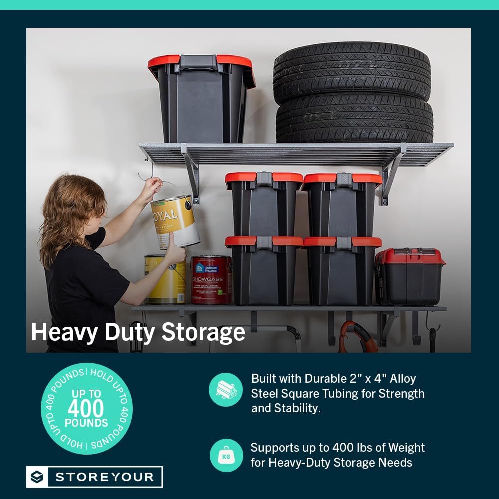 StoreYourBoard 2-Pack Heavy Duty Wall Shelves – Wall-Mounted Garage Storage Shelving and Organization for Sheds, Closets, or Utility Rooms – Holds 200 lbs, 2ft x 4ft, Hammered Gray