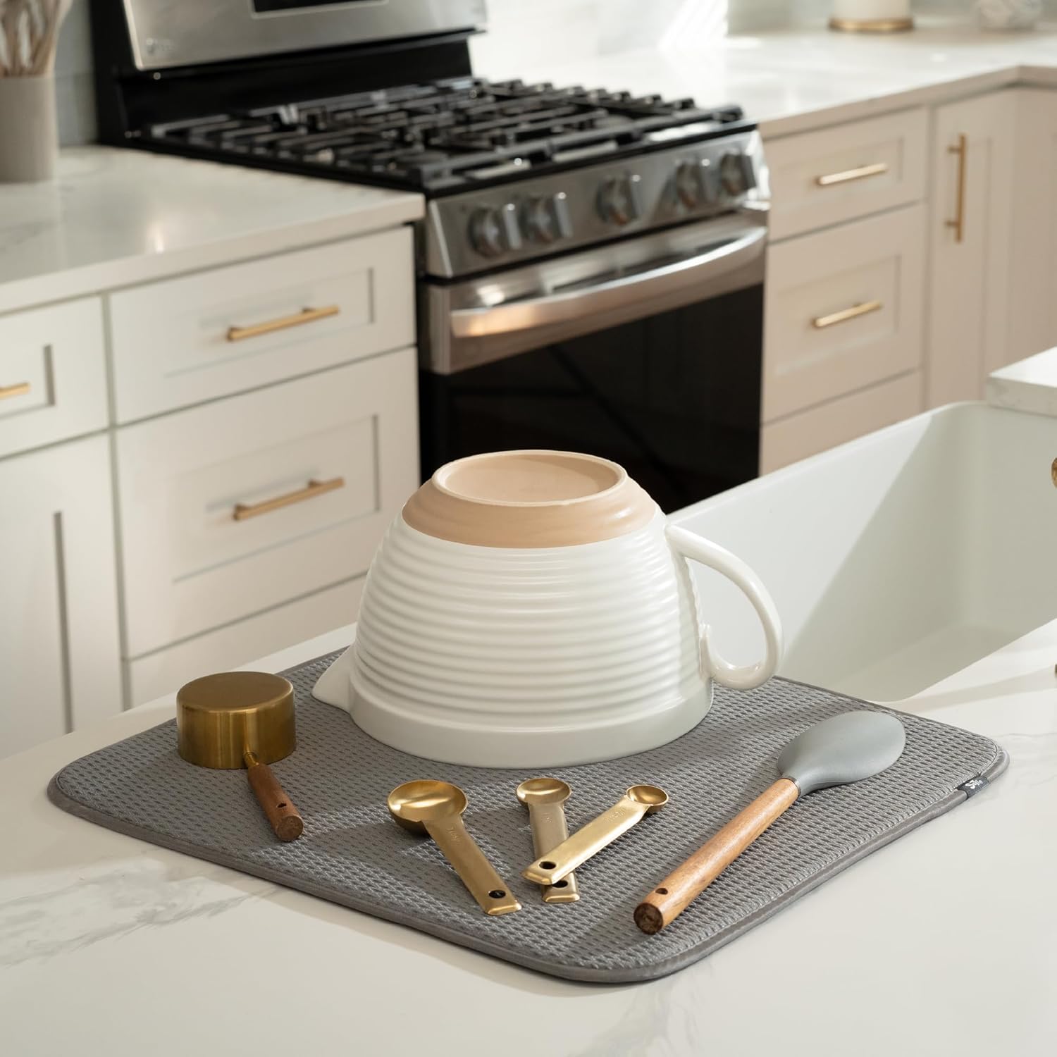 - Dish drying mat for kitchen counter protects surfaces from scratches and scuffs when placed under kitchen gadgets; multipurpose drying pads can be used as an appliance slider for a mixer or blender