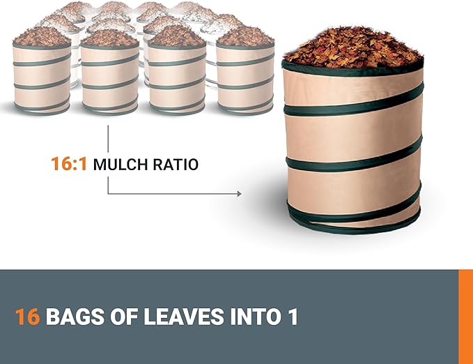 - 16:1 Mulch ratio: Shreds 16 bags of leaves into one.