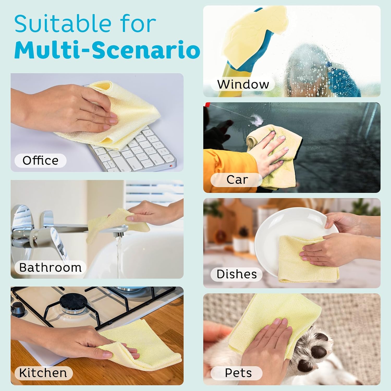 - Value Pack - With 72 microfiber towels in a pack is ideal for routine houseold and commercial cleaning tasks.Excellent use for Kitchen, floors, House furniture, Appliances, Window glass, Countertops, and Car.