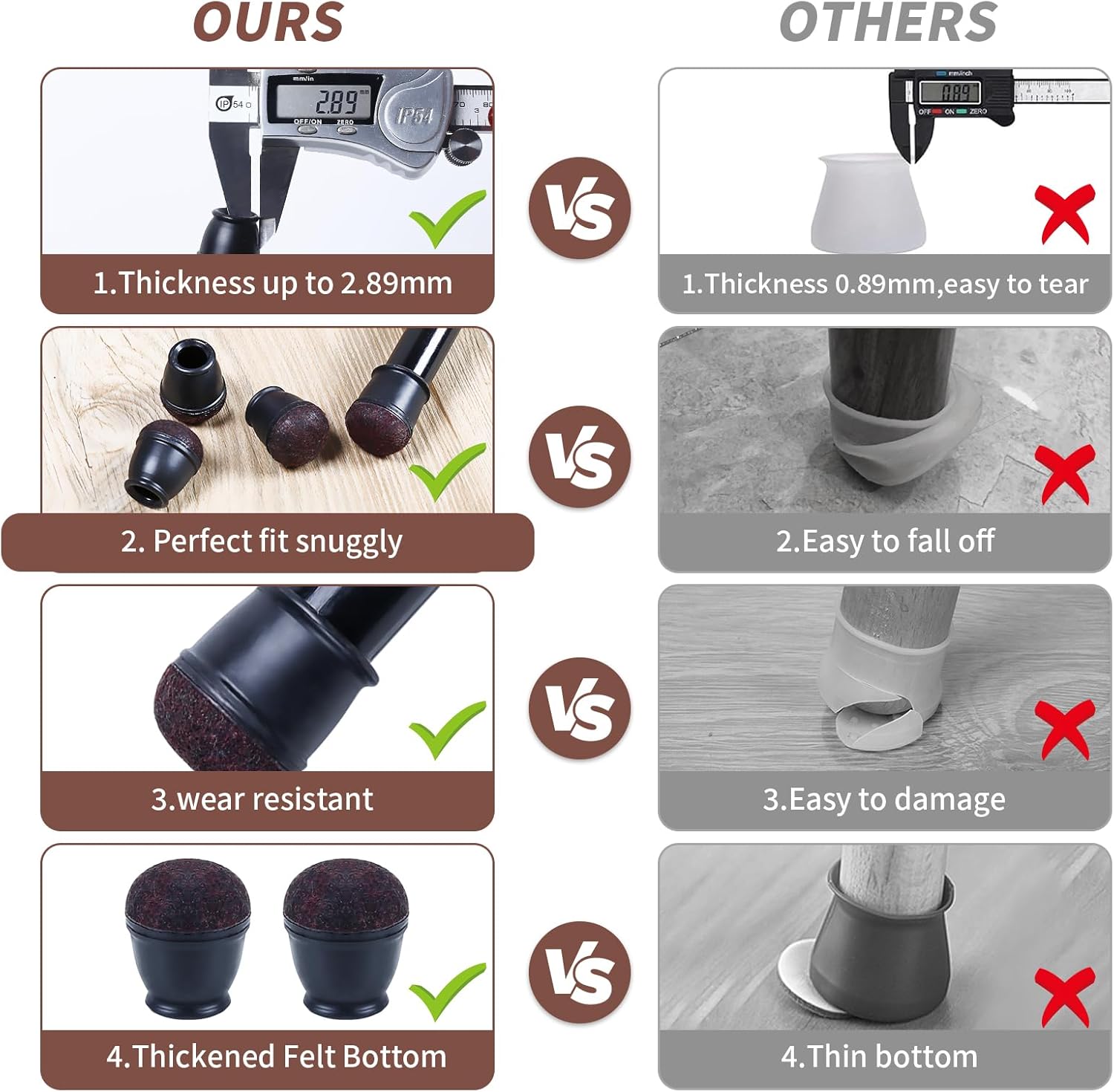 - ☛【360°Thickened Wrapped】- The 0.2 inches (5mm) upgraded thickened bottom felt more wear-resistant, lasting much longer. These silicone chair leg floor protectors protect your hardwood, ceramic tile and linoleum floors from marring and scuffs.