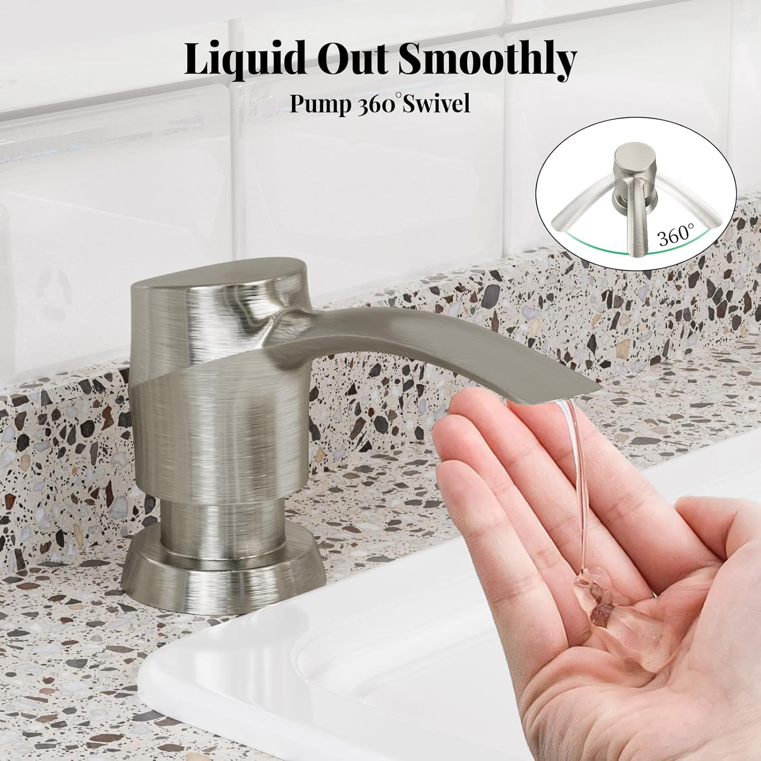 - 360° Swivel Pump:SAMODRA sink soap dispenser pump is 360° swivel,which is save up rooms. The morden appearance design makes your kitchen looks more tidy and bright!
