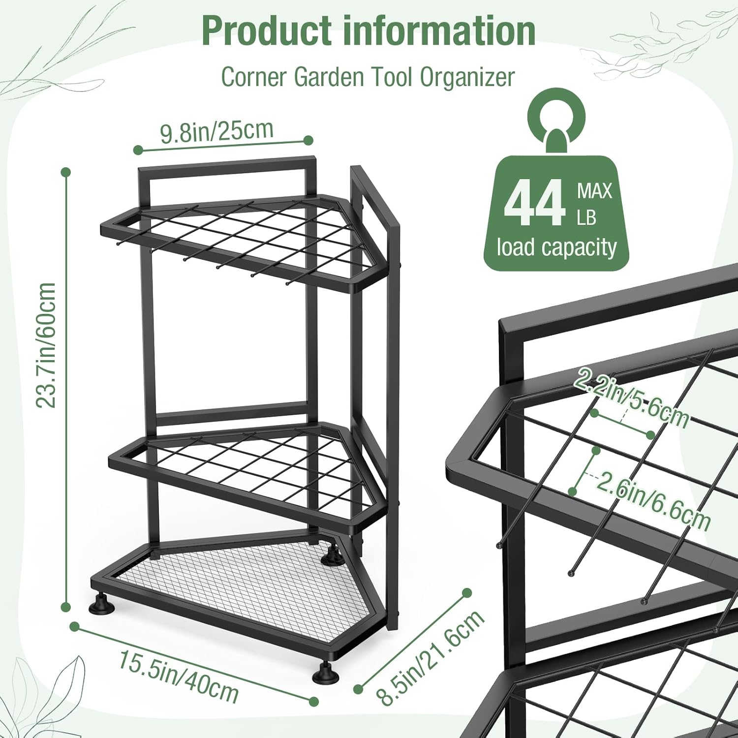 - Corner Friendly Trianglar Tool Rack-Make the most of unused corners with this space-saving garden tool organizer. Its compact triangular design fits snugly into tight spaces, keeping tools neatly stored and within easy reach while freeing up floor space