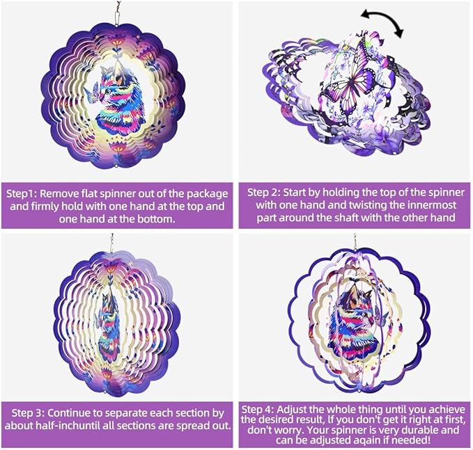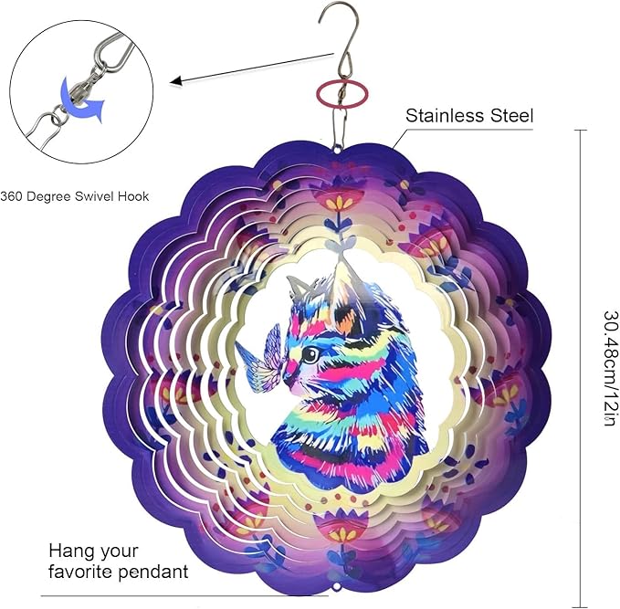 - 【Perfect Gift for Cat Lovers】 A thoughtful gift for women, mom, grandma, friends, or any cat enthusiast. This 12-inch cat hanging wind spinner makes a unique present for birthdays, Mother’s Day, Christmas, or housewarming