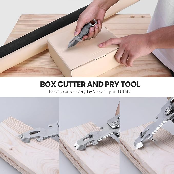 - 8 IN 1 KEYCHAIN MULTITOOL: This keychain multitool can be used as a keychain knife, small box cutter, can/bottle opener keychain, pry bar, slotted screwdriver, 1/4 wrench and scraper a edc keychain clip. The pocket multi-tools do everything from open letter/box to be used as repair tool kit to tighten bolts and screws. Minimal design meets maximum utility